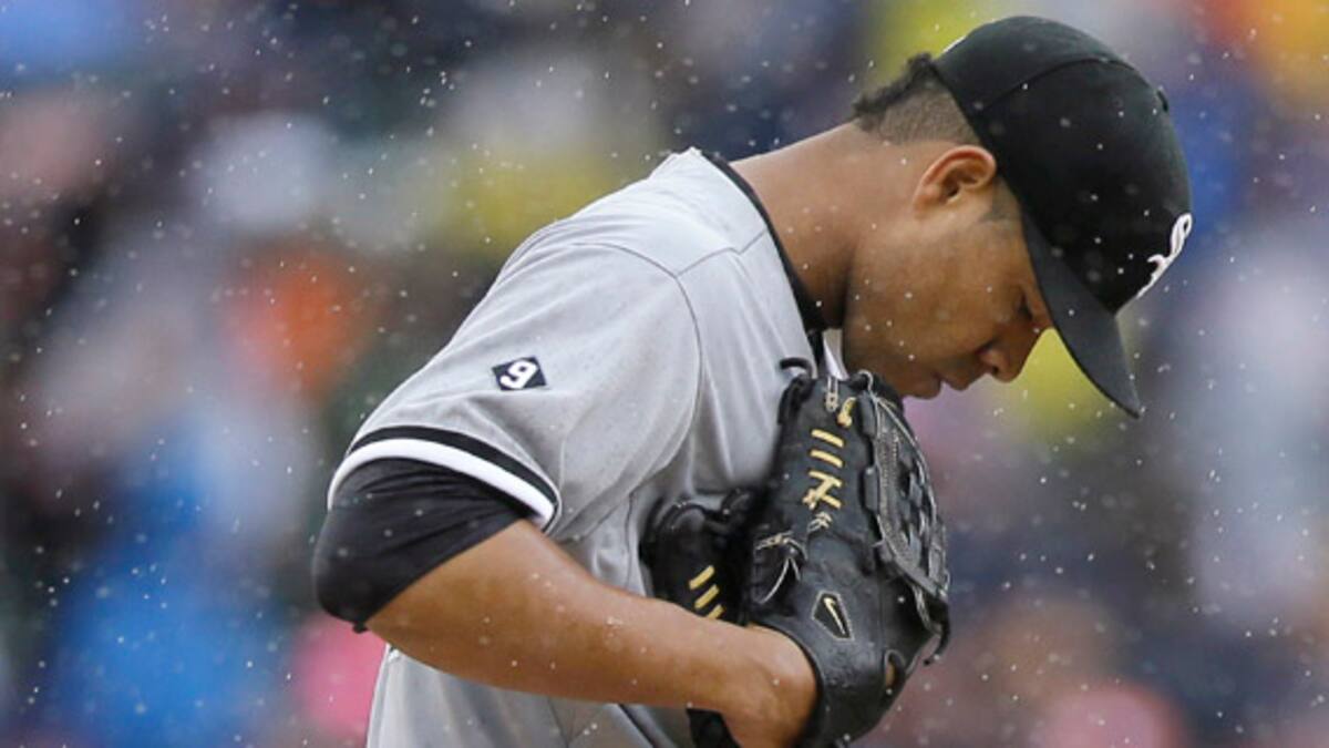 El abridor colombiano salió sin decisión. Durante su actuación en el montículo recibió dos carreras, permitió siete hits y concedió una bases por bola. Quintana abandonó el juego en la parte baja del séptimo dejando el partido empatado a dos carreras.