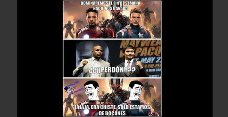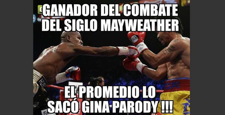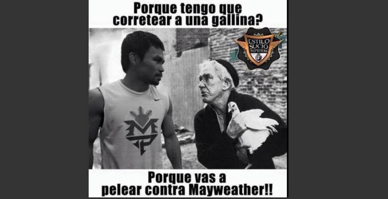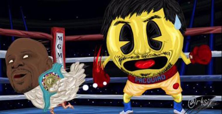 Imágenes de analogías y frases endilgadas a Mayweather o Pacquiao conforman algunas de las creaciones burlescas del mega combate que se vivió este sábado en las vegas.