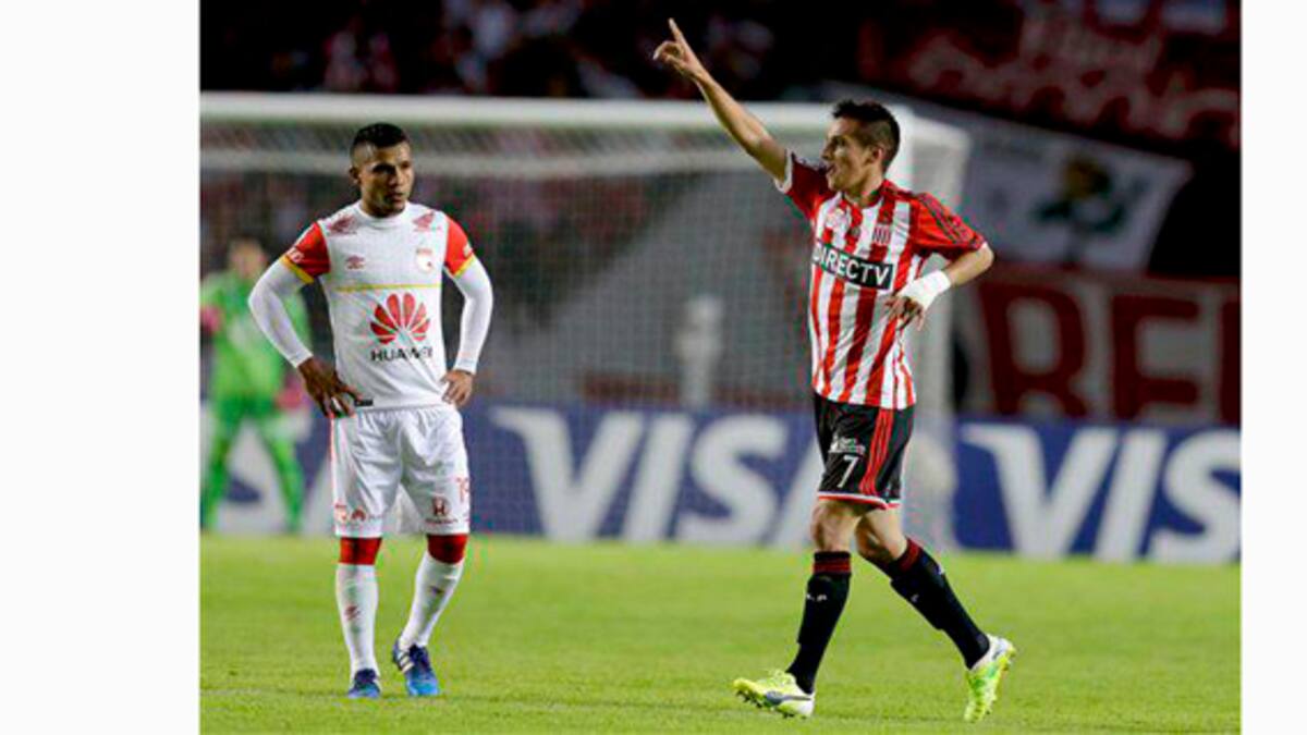 Estudiantes sacó provecho del juego aéreo y con goles de Carlos Auzqui y Guido Carrillo venció 2-1 el martes a Independiente Santa Fe de Colombia en el choque de ida por los octavos de final de la Copa Libertadores.