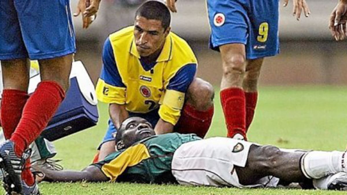 (Camerunés), 26 de junio de 2003, durante el encuentro de la selección de su país contra Colombia, en el estadio Gerland de Lyon (Francia). Se jugaba la Copa Confederaciones. El dictamen fue que falleció por miocardiopatía hipertrófica, problema hereditario.