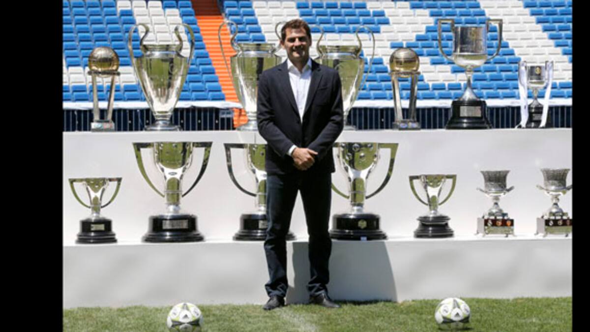 Sobre el césped, le esperaban a Iker los 19 trofeos ganados durante su etapa en el Real Madrid: tres Ligas de Campeones, un Mundial de clubes, dos Intercontinentales, dos Supercopas de Europa, cinco Ligas, dos Copas del Rey y cuatro Supercopas de España.