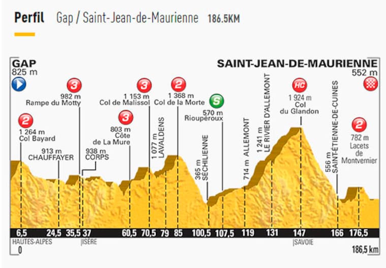 La fracción, la número 18, tendrá un recorrido de 186,5 km que separan la ciudad de Gap de la pequeña localidad de Saint-Jean-de-Maurienne ,escondida en el corazón de los Alpes. La etapa comenzó con el ascenso al col Bayard.