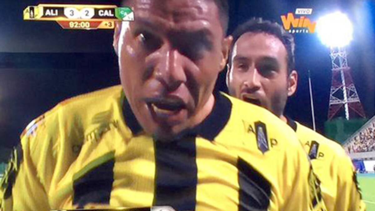 Martín Arzuaga anotó en la noche de este domingo el tanto del triunfo de Alianza Petrolera 3-2 sobre el Deportivo Cali, en el estadio Daniel Villa Zapata de Barrancabermeja. El delantero cesarense celebró de manera efusiva frente a la cámara, gritando palabras de grueso calibre y señalando al cielo.