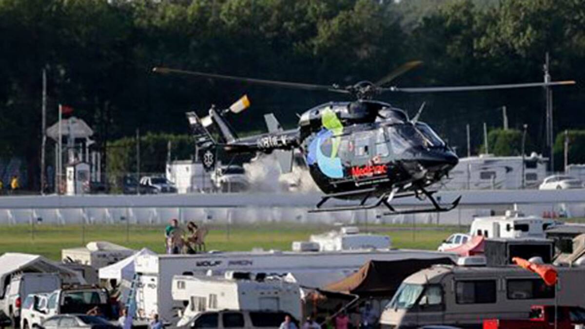 De inmediato, las cuadrillas de seguridad rodearon el vehículo de Wilson, quien fue llevado en helicóptero al hospital.