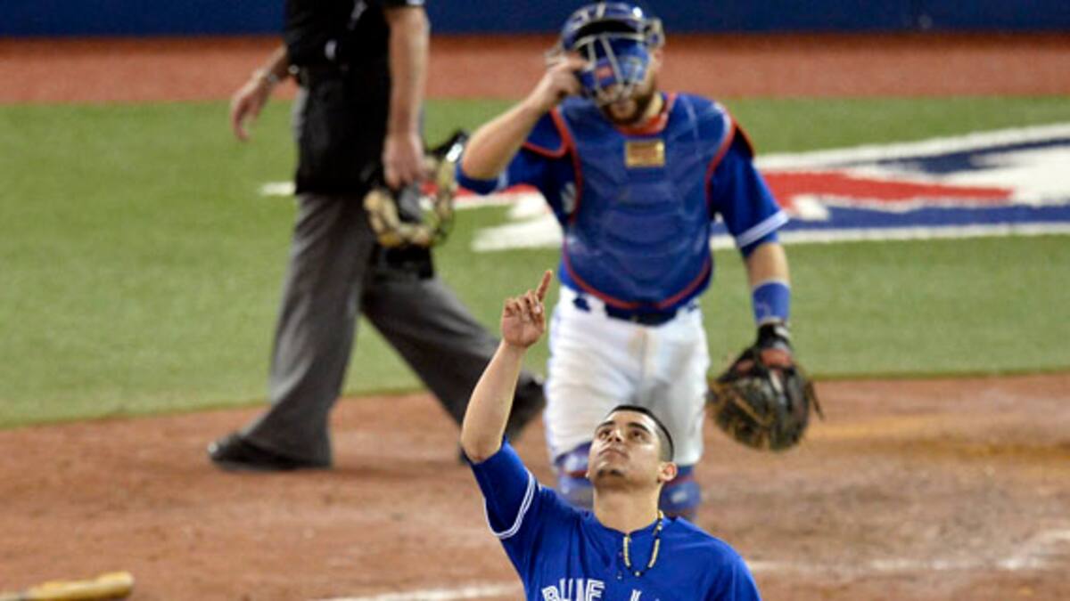 Por los Azulejos, los dominicanos José Bautista de 3-1 con una empujada, Edwin Encarnación de 5-2 con una anotada.