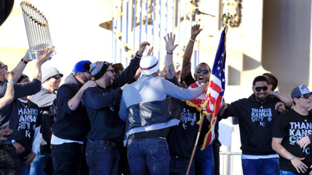 El desfile comenzó en el sector Power & Light District en el centro y terminaba en Union Station. Los Reales conquistaron su primera Serie Mundial desde 1985 el domingo con un triunfo 7-2 sobre los Mets de Nueva York en el quinto partido.