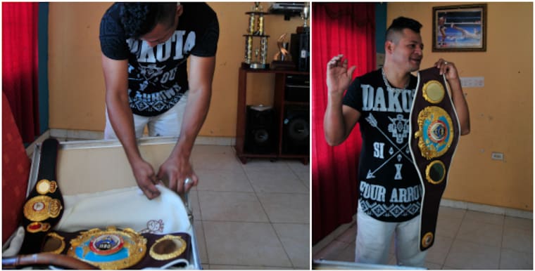 El tesoro más preciado para ‘Mochuelo’ reposa en una maleta plateada. Ahí está el fajín de campeón, el que luce orgullosamente y con el que se pasea sonriente por la sala de su casa.