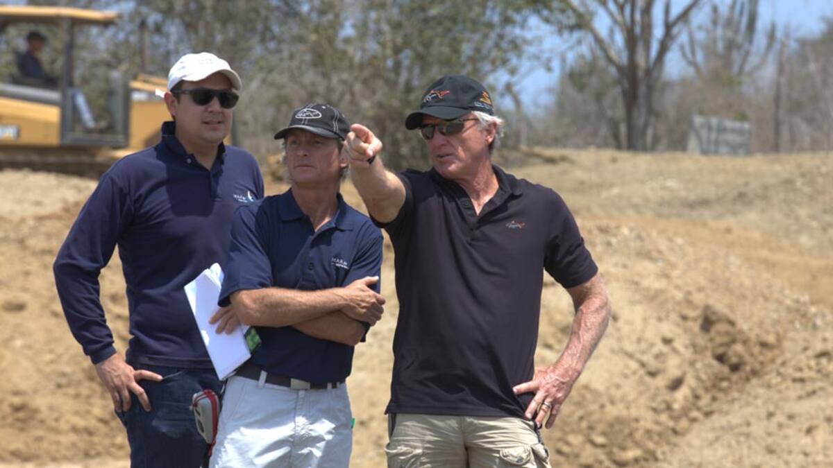 Norman estuvo caminando la construcción de la cancha con su diseñador Danny Fore y algunos socios de Mar de Indias.