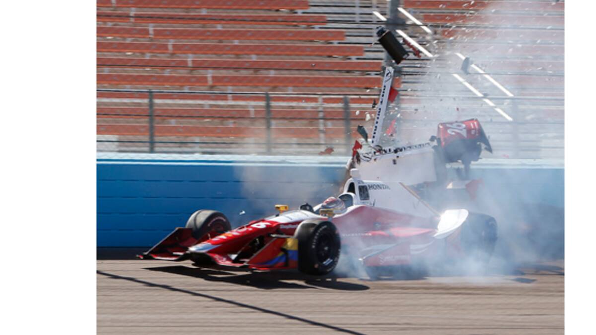 El piloto colombiano de la IndyCar, Carlos Muñoz, fue retirado de su bólido en una camilla tras estrellarse este viernes, durante las pruebas de clasificación en el Phoenix International Railway.