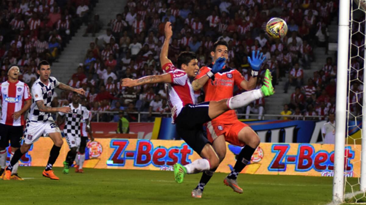 La visita no salió a especular y en la primera aproximación a los predios rojiblancos, Misael Riascos colgó al arquero Sebastián Viera, con un remate de media distancia, para poner el 1-0 en el marcador.