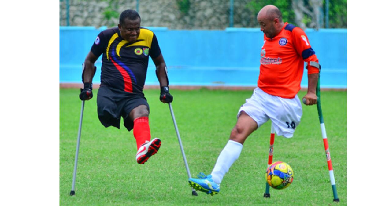 El exsoldado, jugador de Águilas de Boyacá, fue uno de los guerreros que dio la batalla en la cancha, ayer al mediodía en el polideportivo de Uniautónoma, en la jornada final del Torneo de Fútbol para Amputados, patrocinado por la institución de educación superior.