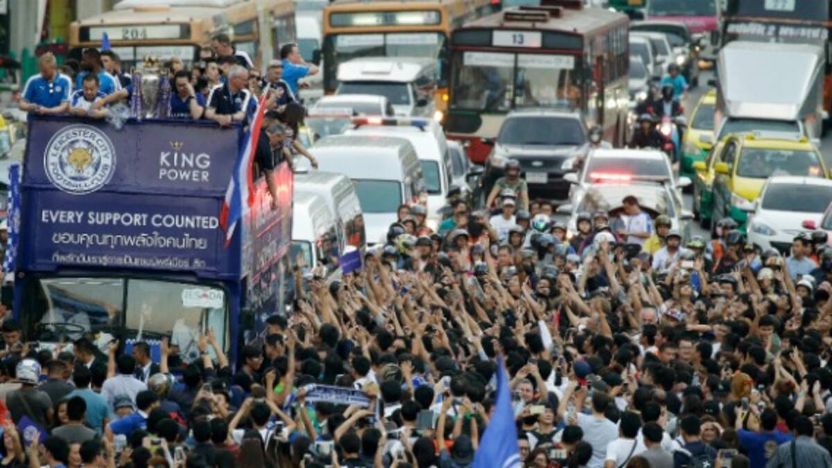 Miles de aficionados se echaron ayer a las calles de Bangkok para celebrar la Premier League inglesa del humilde Leicester City, propiedad del magnate tailandés Vichai Srivaddhanaprabha, una de las personas más acaudaladas del país.