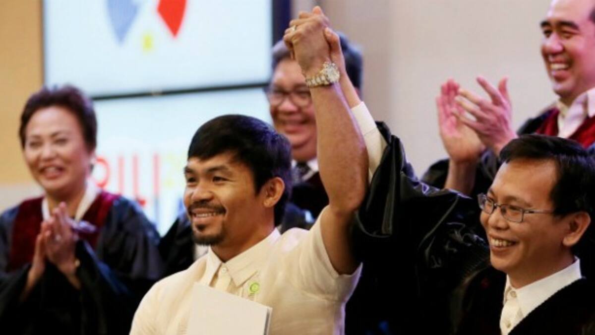 El deportista, de 37 años, recibió más de 16 millones de votos y terminó séptimo entre los 12 nuevos senadores salidos de los recientes comicios. El Senado es a menudo un trampolín para buscar la presidencia y a principios de año Pacquiao dijo que colgaría los guantes para convertirse en político a tiempo completo, con miras a una posible postulación presidencial.