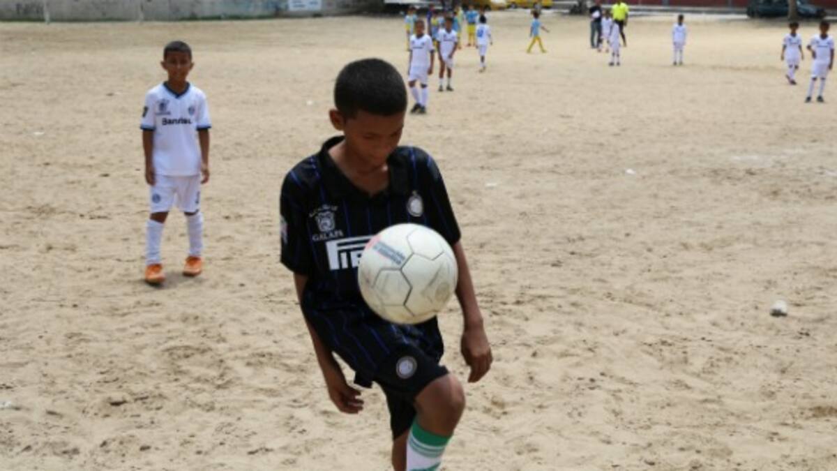 'Me ha tocado vender hierro para conseguir los pasajes para ir a entrenar y jugar fútbol. Yo me busco ese dinero como sea cuando mis padres no tienen', expresa Jesús Pérez, quien el pasado sábado le dio el triunfo 1-0 a su equipo, el Deportivo Galapa ante Neogranadino, en el Torneo Osvaldo Noguera que se disputa en la cancha del barrio El Carmen.