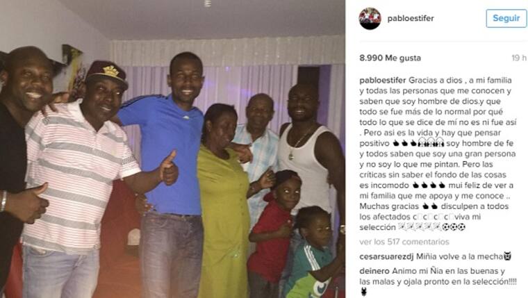 'Gracias a Dios, a mi familia y a todas las personas que me conocen y saben que soy un hombre de Dios. Todo se fue más de lo normal y lo que se dice de mí no es ni fue así. Así es la vida y hay que pensar positivo. Soy un hombre de fe, no soy lo que pintan. Las críticas, sin saber el fondo de las cosas, incomodan. Estoy muy feliz de ver a mi familia que me apoya y me conoce. Muchas gracias y disculpas a todos', escribió.