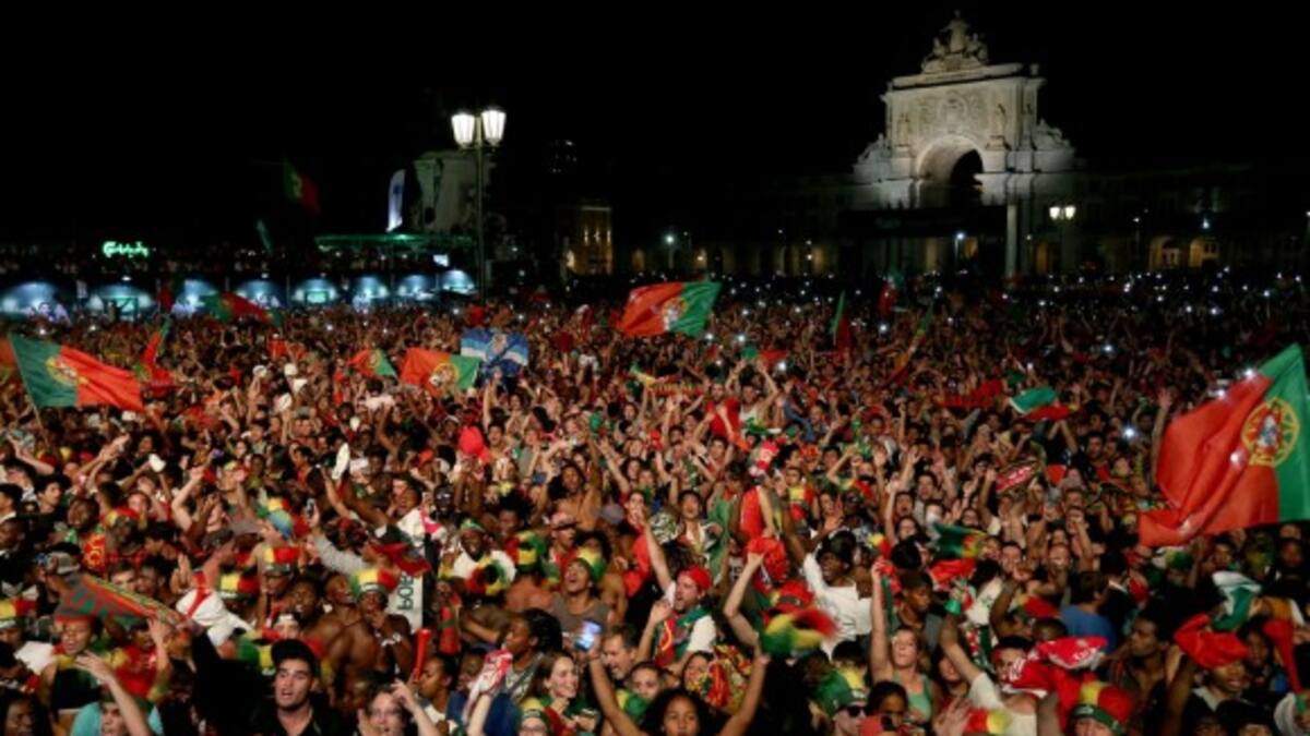 Decenas de miles de portugueses se agolparon hoy en la plaza del Marquês de Pombal de Lisboa para celebrar su primera Eurocopa, 12 años más tarde de haber perdido en su propia casa una final de ese mismo torneo ante Grecia.