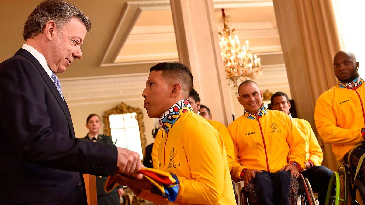 Juan Manuel Santos, entregó hoy el pabellón de su país y una bandera de la paz a los deportistas que participarán en los Juegos Paralímpicos de Río 2016 que comienzan el próximo 7 de septiembre.