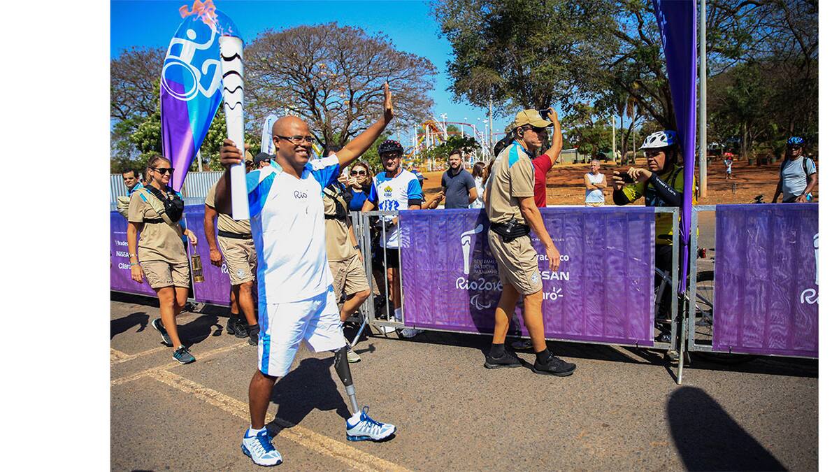 La antorcha fue encendida por el profesor de educación física Ulisses Araujo, uno de los pioneros en Brasil en la preparación de deportistas con algún tipo de deficiencia, y posteriormente comenzó su recorrido por la capital brasileña.
