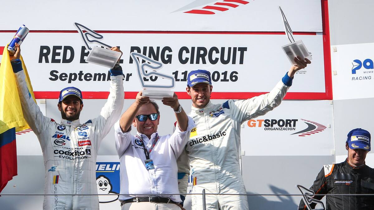 El piloto colombiano Gustavo Yacamán y su compañero en el BMW Team Teo Martin, el español Fernando Monje, realizaron una carrera impecable en el circuito Red Bull Ring de Austria, logrando su primera victoria en el International GT Open.