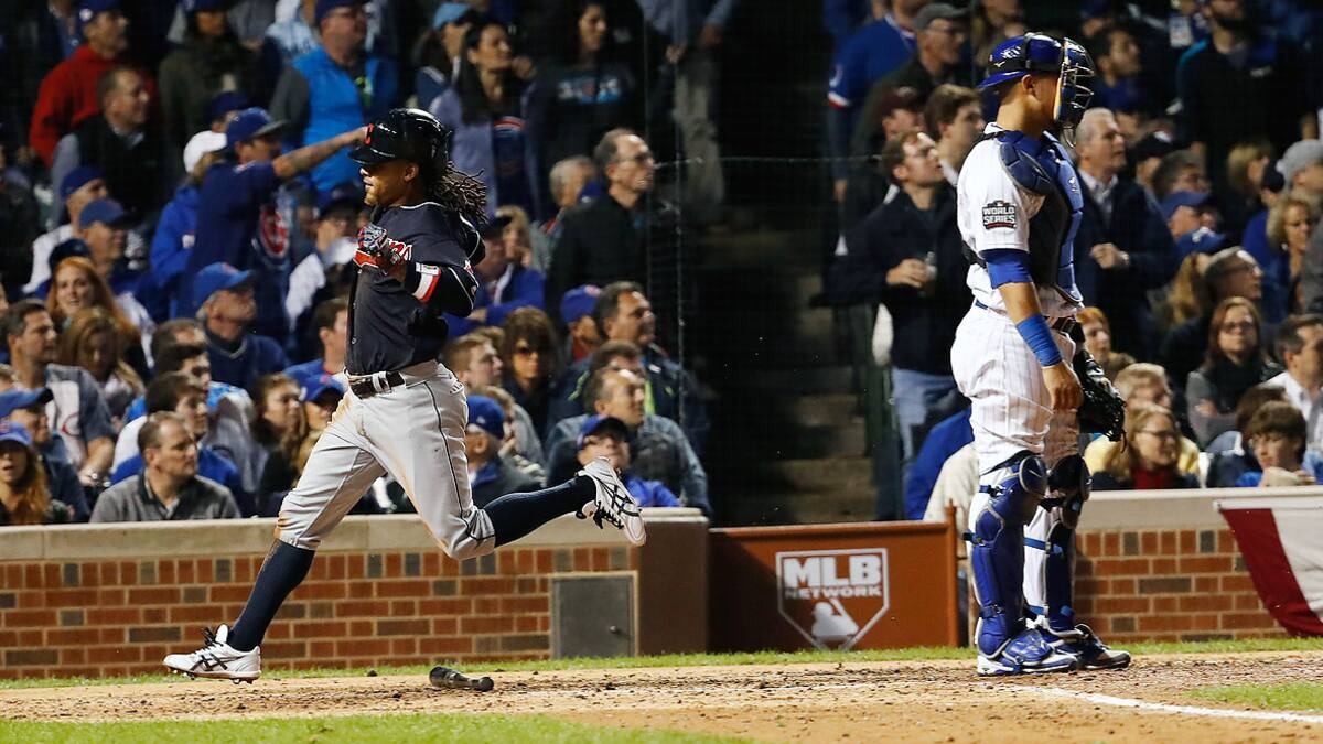 Roberto Pérez abrió con sencillo. Fue remplazado por el corredor emergente Michael Martínez; Tyler Naquin se sacrificó para mover al corredor; en el siguiente turno, un mal lanzamiento al plato no pudo ser controlado por el receptor de Cachorros Wilson Contreras y el hombre estacionado en la segunda avanzó a la tercera.