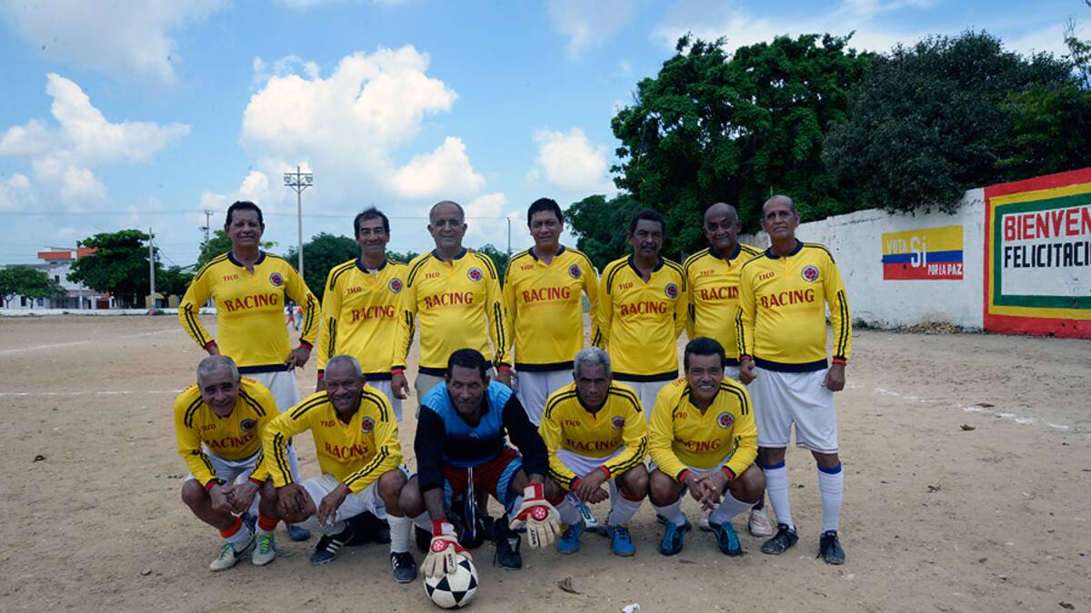 Óscar Candama de la Hoz se proyecta por la banda izquierda con gran agilidad y velocidad. Él es uno de los integrantes del equipo Racing Club, que compite en el torneo plus 60 del barrio Cevillar. Candama, de 62 años, y nacido en Rebolo, se divierte cada domingo dentro y fuera de la cancha.