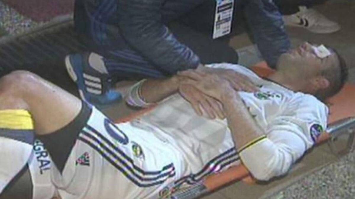 El atacante fue retirado del terreno de juego rápidamente y sustituido por el nigeriano Emmanuel Emenike.