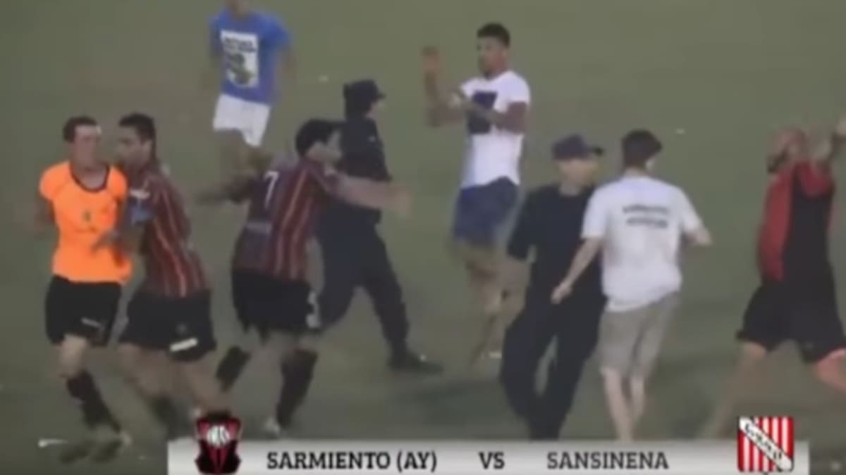 Un árbitro de fútbol de Argentina fue agredido por hinchas y jugadores del equipo Sarmiento de Ayacucho en un partido de la liga Federal B por no pitar un penalti en favor del equipo local, informaron este lunes medios locales.