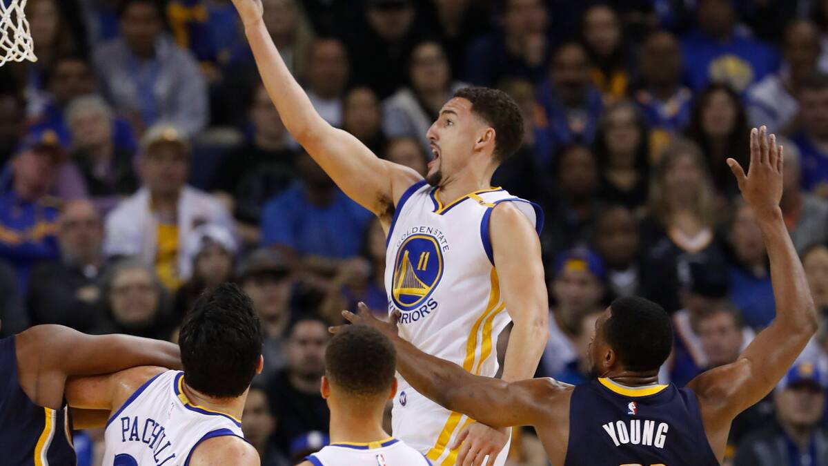 Thompson surgió con su mejor toque de muñeca como profesional al conseguir 60 puntos, incluidos 40 en la primera parte, y lideró el ataque arrollador de los Warriors de Golden State que derrotaron por paliza de 142-106 a los Pacers de Indiana.