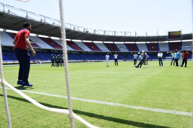 El alcalde de Barranquilla, Alejandro Char, entregó las obras acompañado de Sebastián Viera, capitán del Junior, y Alberto Gamero, director técnico del cuadro tiburón.