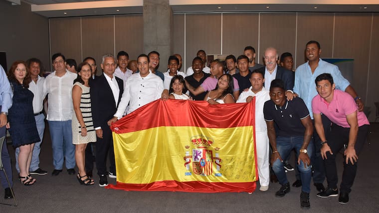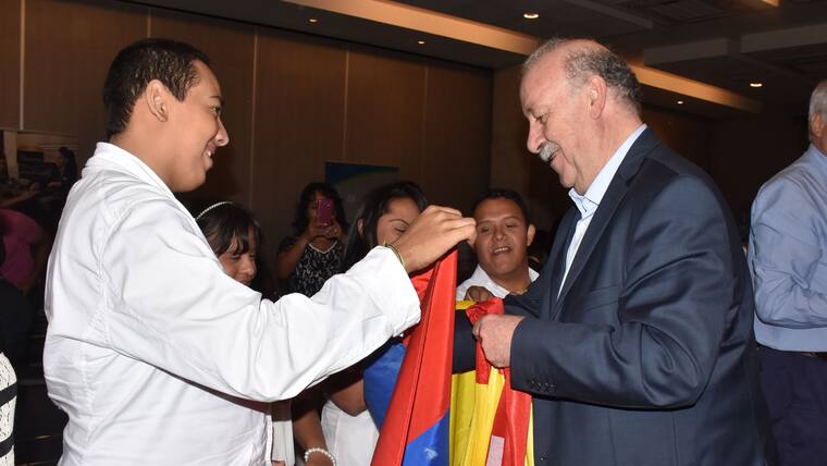 El técnico español, que ganó de todo con el Real Madrid y la Selección de España, cerró con este evento su visita a Barranquilla. El entrenador concedió una rueda de prensa el martes, día de su llegada, dictó una conferencia el miércoles al mediodía en compañía de sus asistentes Javier Miñano (preparador físico) y Toni Grande (ayudante), y en la noche asistió a la cena en beneficio de Fides.
