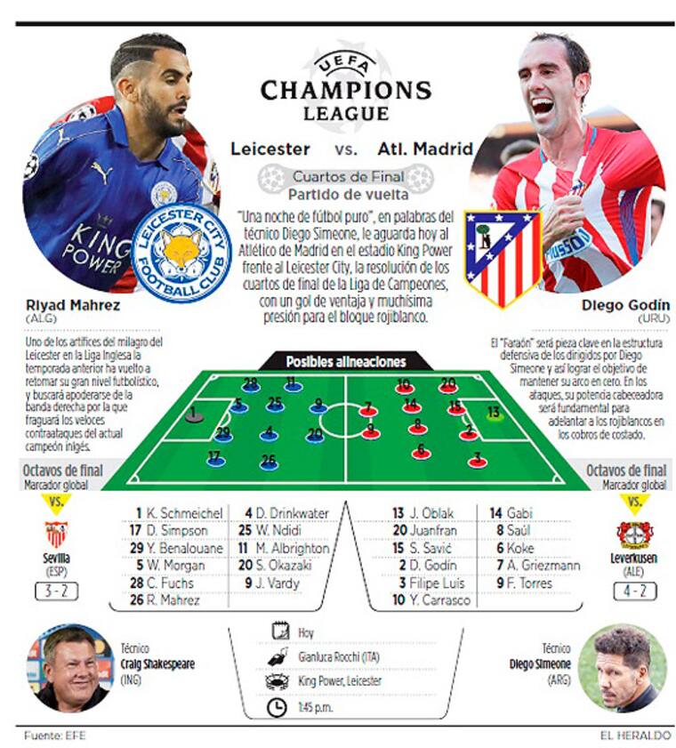 Es el asalto definitivo a las semifinales. A ellas aspira el Atlético, subcampeón y presente en esa ronda en dos de las últimas tres ediciones, y a él se opone el Leicester, ganador de sus cuatro duelos como local en esta edición del torneo; un combate de indudable intensidad, por cada rechace, cada balón y cada sector.