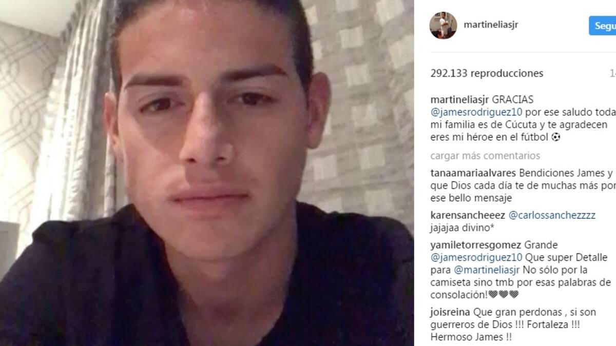 El volante colombiano James Rodríguez le envió ayer un mensaje de aliento a Martín Elías Jr., hijo del fallecido cantante vallenato, que perdió la vida luego de un accidente vial en el departamento de Sucre. El '10' del Real Madrid espera conocer pronto al niño, al que le prometió hacerle llegar una camiseta del equipo merengue.