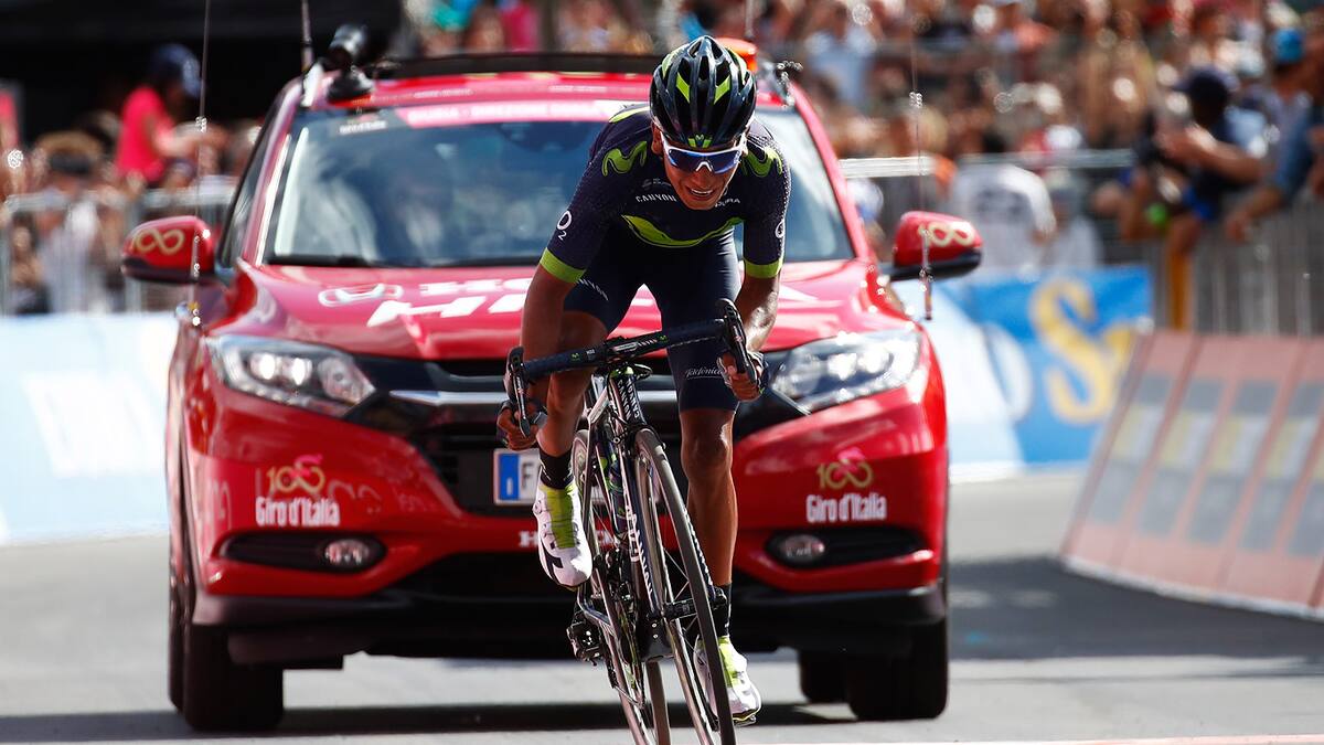 Quintana entró en solitario a 12 de segundos y aprovechó el mal día del líder, Tom Dumoulin (Sunweb) para recortarle 2 minutos y 10 segundos a la maglia rosa y colocarse ahora a solo 31 segundos del liderato.