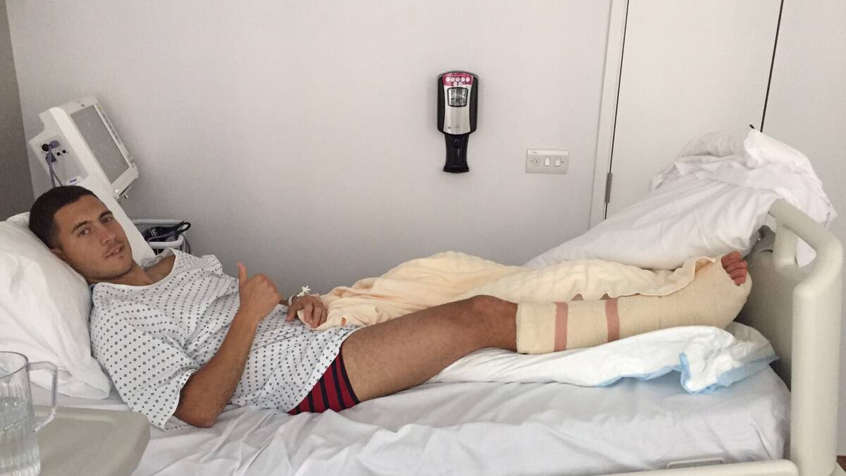 'Eden Hazard fue operado con éxito hoy tras una fractura del tobillo derecho durante un entrenamiento de la selección belga', anunció un comunicado del Chelsea.