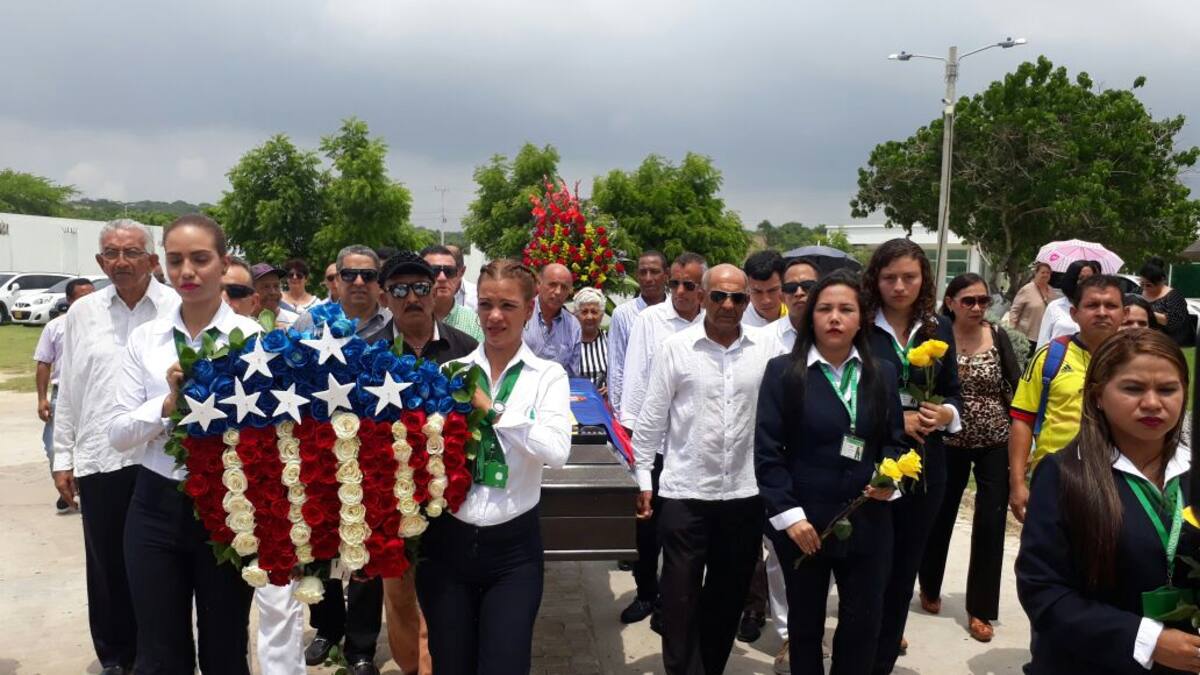 Un fuerte aplauso se escuchó a las 12: 40 del mediodía de este miércoles, a esa hora llegó el cadáver del Olímpico. Una corona de flores con el escudo del Junior encabezó la marcha hacia su tumba.