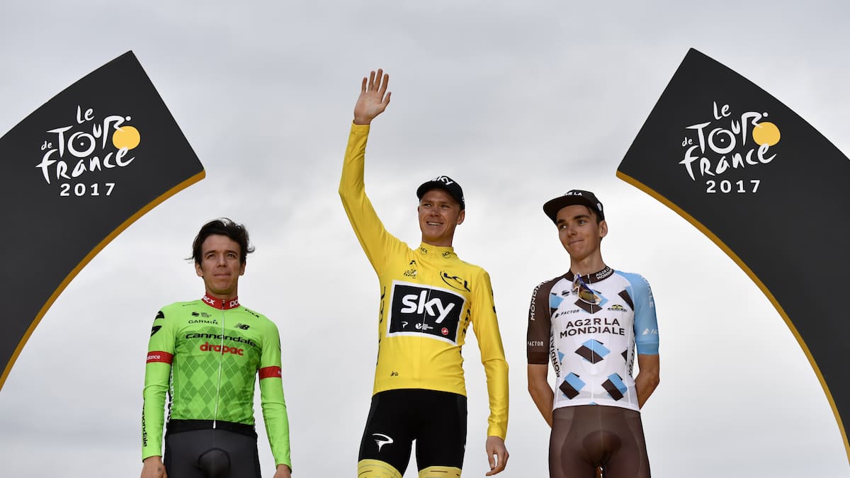 En las cuatro ocasiones en que Nairo Quintana (tres veces) y Rigoberto Urán (una ocasión) subieron al podio, el campeón fue el británico Chris Froome, que ha ganado cuatro Tours a sus 32 años.
