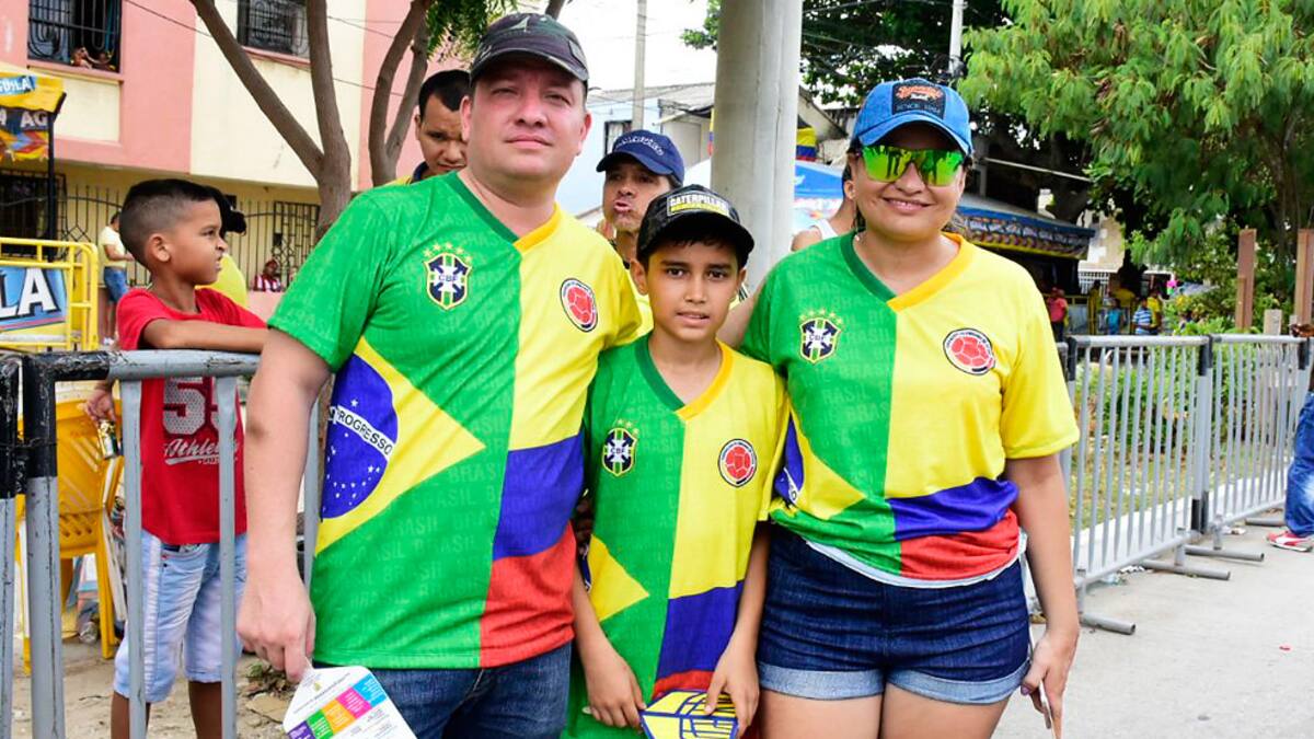 Ella, su esposo, Juan Pablo Valencia y el hijo de ambos, Luis Gabriel, se ocultan bajo la sombra de un árbol en los exteriores de la zona occidental del estadio Metropolitano Roberto Meléndez. Esquivan un poco el sofoco, pero no a los curiosos que notan que sus camisetas se dividen entre los colores y símbolos de ambos países. Tal cual está el corazón de ambos: mitad samba, mitad cumbia.