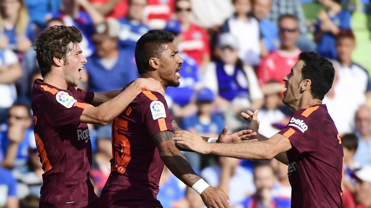 El FC Barcelona obtuvo una trabajada victoria en el campo del Getafe (2-1), este sábado en partido de la cuarta la jornada de la liga española, en el que tuvo que remontar al equipo madrileño, con dos goles en los minutos finales de Denis Suárez (61) y del brasileño Paulinho (84), que habían empezado en el banquillo.