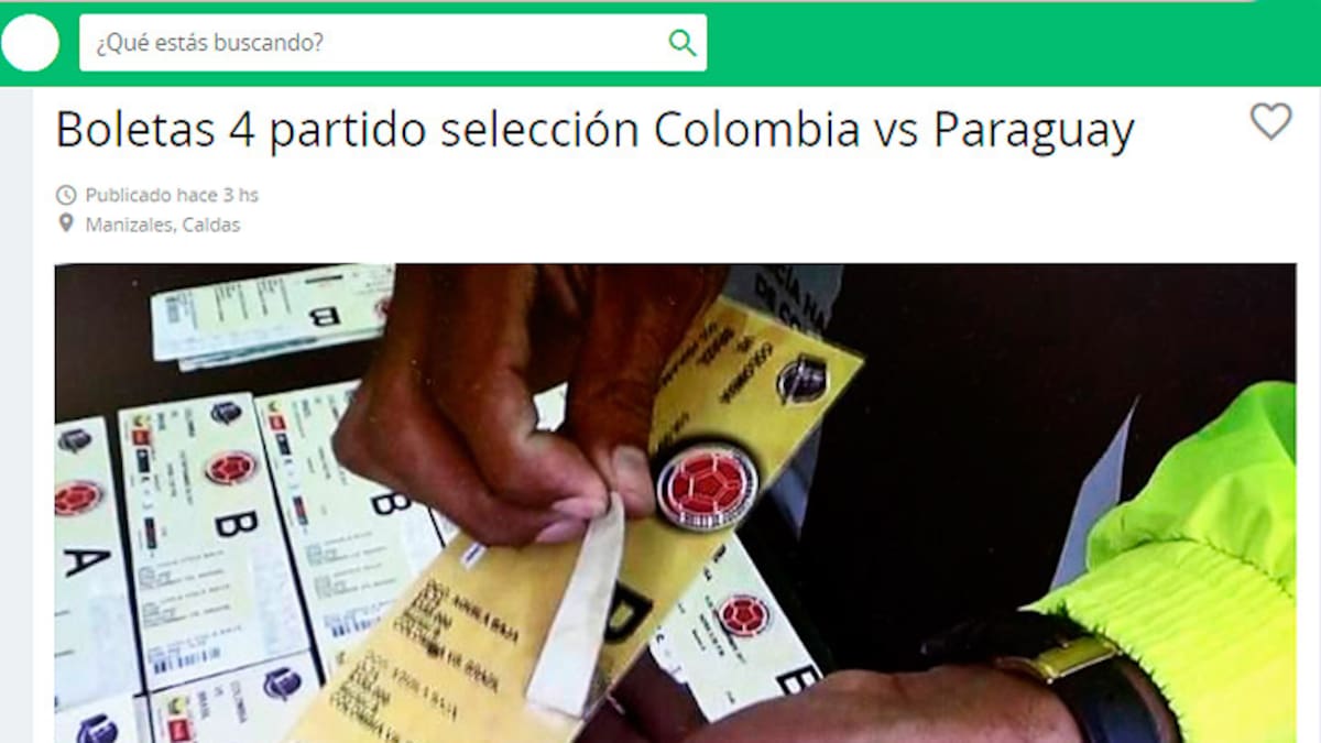 No ha pasado mucho tiempo desde que finalizó la venta de boletas por internet para el partido entre Colombia y Paraguay y ya los revendedores ofrecen las entradas con el doble del valor original.
