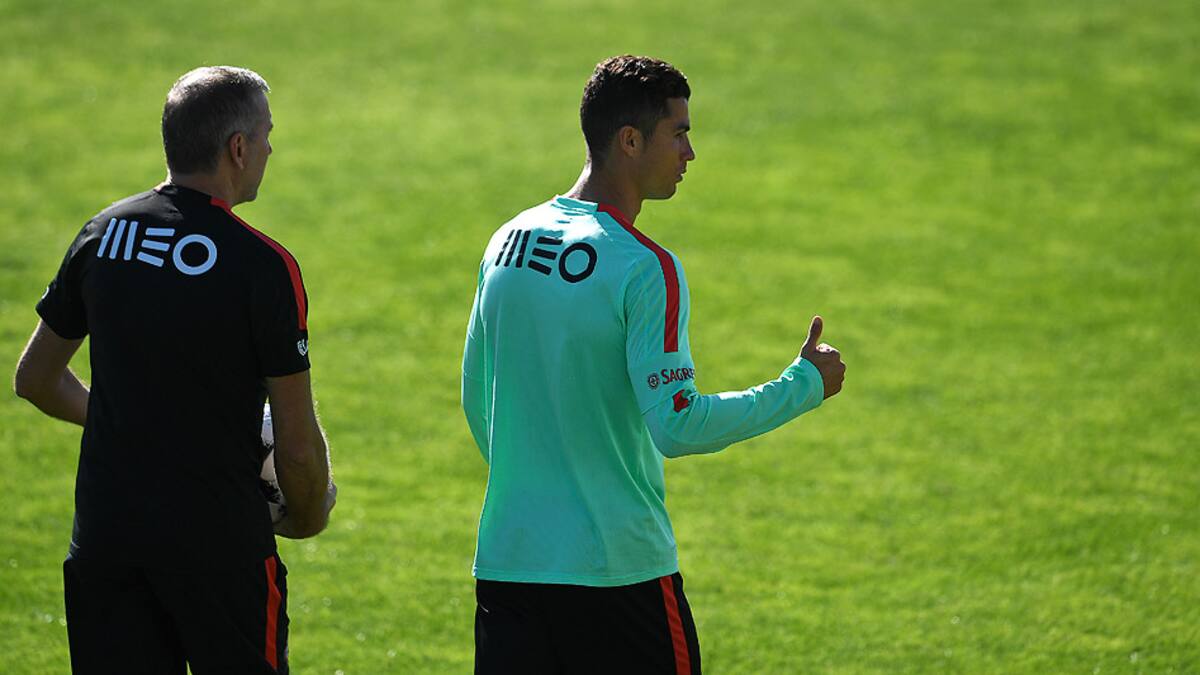 Al inicio de una sesión matinal realizada en el centro de entrenamiento de la Selección, situado en la periferia oeste de Lisboa, el delantero estrella del Real Madrid corrió y tocó algunos balones en compañía de un fisioterapeuta, constató un fotógrafo de la AFP.