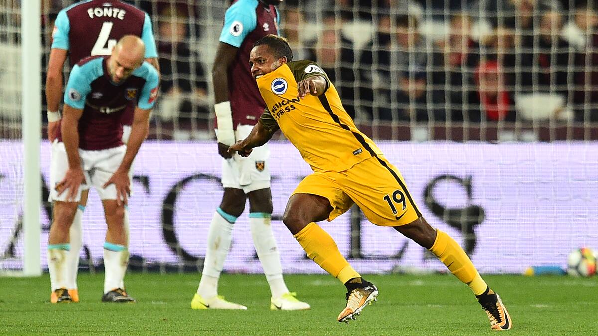 El delantero colombiano José Heriberto Izquierdo marcó ayer su primer gol en la Premier League con el Brighton, en el triunfo como visitante 3-0 ante el Wes Ham United.