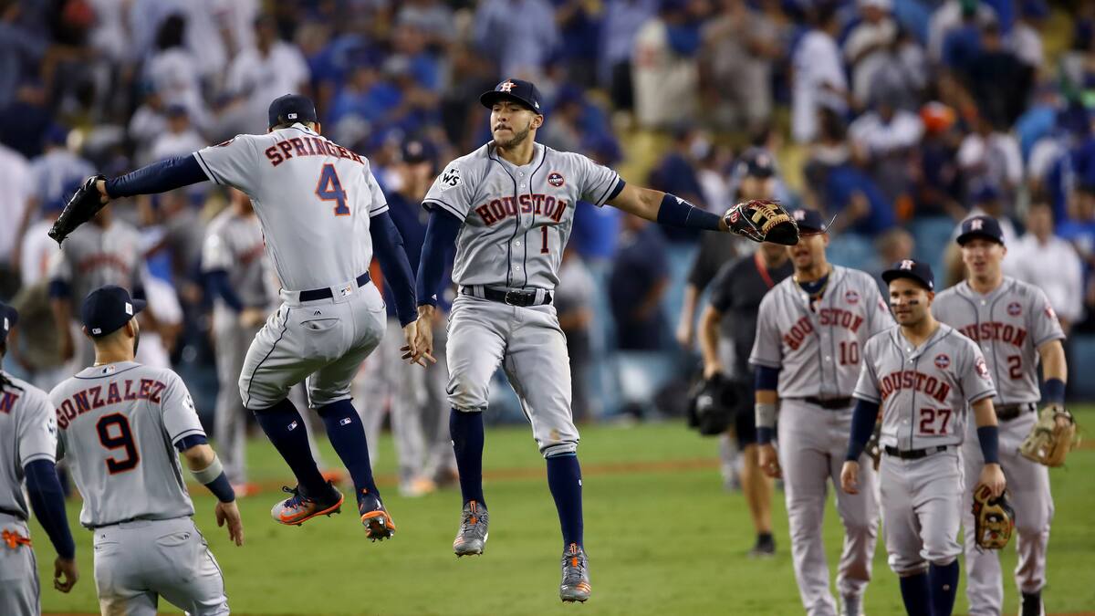 José Altuve, Carlos Correa y por último George Springer se combinaron para dar tres jonrones para los Astros convirtiéndose en el primer equipo que dispara cañonazos en entradas extras en un Clásico de Otoño para llevarse el triunfo.