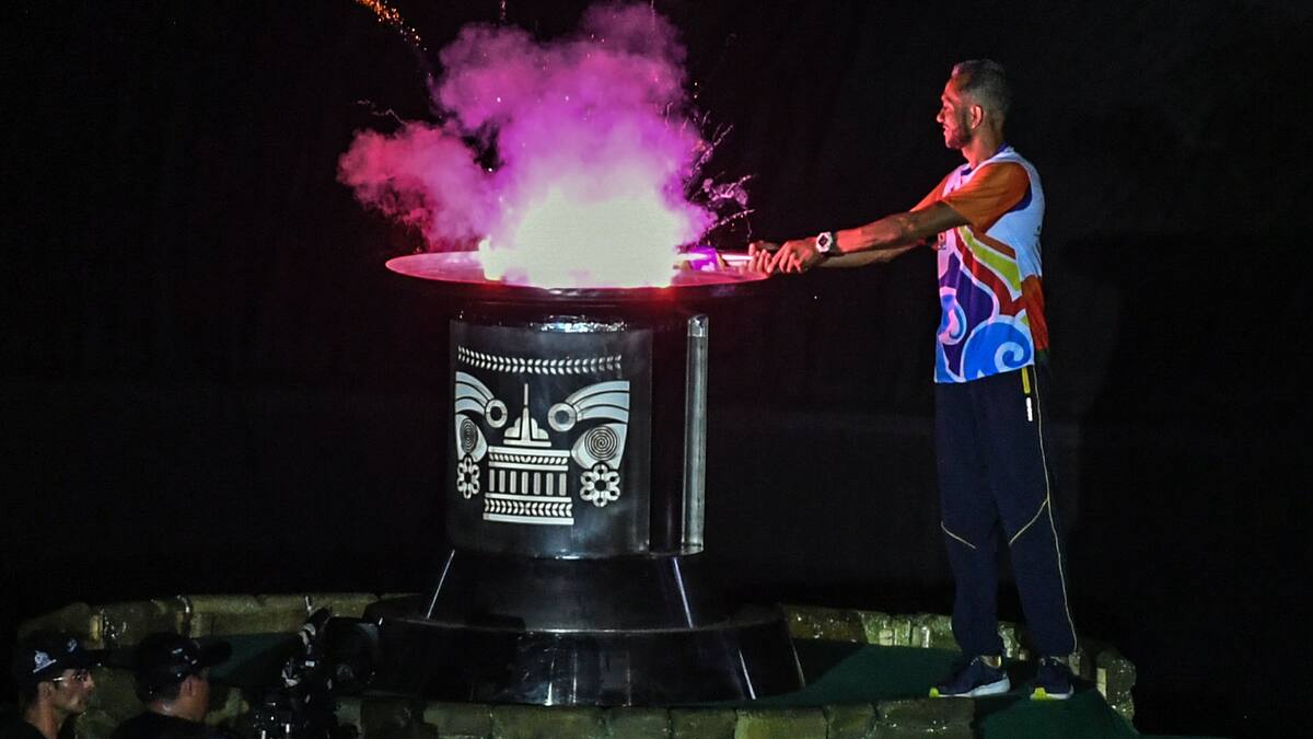 Eduardo Vilarete, Cindy Paola Mera y Arnovis Dalmero llevaron la antorcha en los primeros metros del estadio y el último en tomar la llama fue el especialista de los 110 metros con vallas, quien recorrió los últimos metros hasta subir a la plataforma y encender el pebetero que permanecerá encendido hasta el 25 de noviembre.