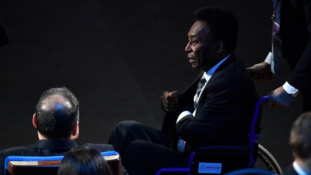 Pelé, considerado uno de los dos mejores futbolistas de la historia, sorprendió este viernes a varios ex futbolistas y corresponsales, tras aparecer en silla de ruedas durante el sorteo del Mundial Rusia 2018.