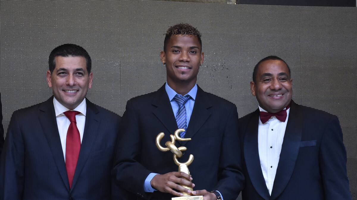 Acompañado por su madre de crianza, su abuela, y su novia Hemilly Vanegas, embarazada, Barrios fue distinguido por encima del antesalista de los Indios de Cleveland Giovanni Urshela, ACORD de plata, y del también futbolista Ayron Del Valle, colíder goleador de la tabla de artilleros de la Liga Águila II y campeón con el club los Millonarios de Bogotá, quien se llevó el ACORD de bronce.