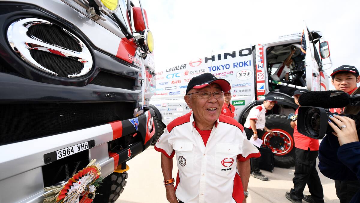'Mi padre es muy fuerte', explicó Teruhito, su hijo de 46 años que está al volante del segundo camión Hino del Team Sugawara, que ya lleva 19 Dakars en sus hombros, a una edad que su padre no era más que un debutante.
