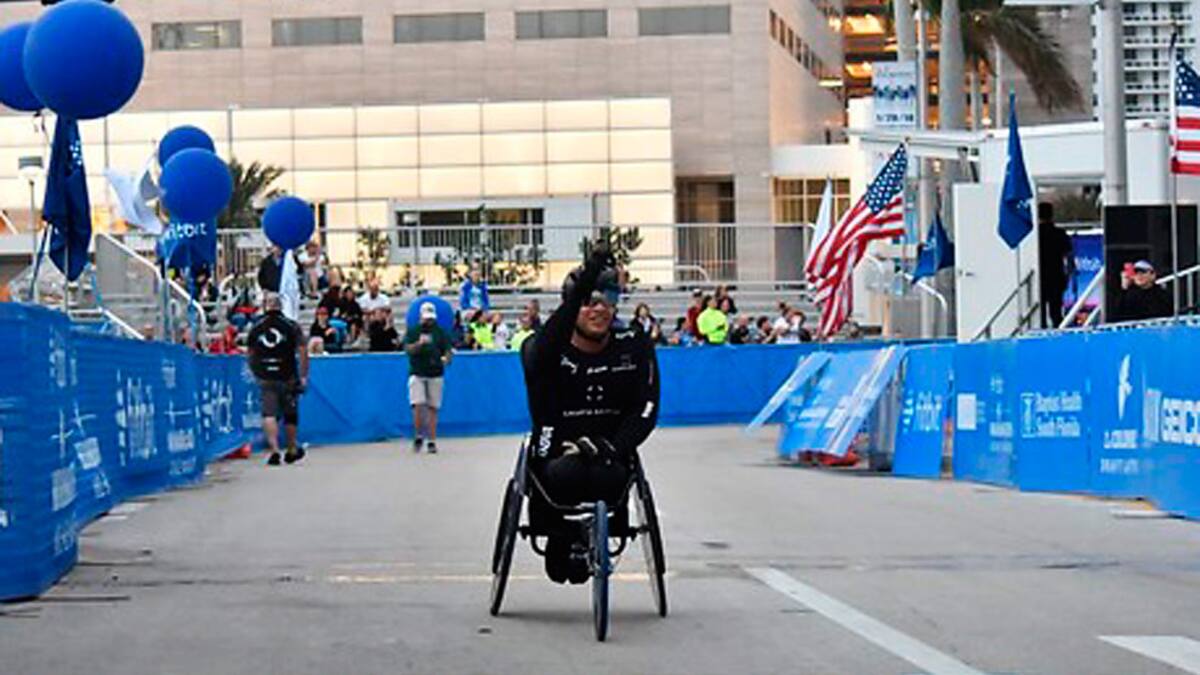 El deportista vallecaucano Francisco Sanclemente se impuso por segundo año consecutivo en la categoría sillas atléticas de la Media Maratón de Miami, con un tiempo de 1:03:18, reduciendo en 22 minutos la marca del año anterior con la que ganó en 2017.