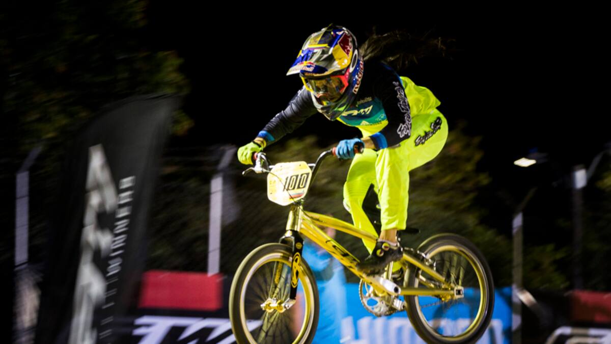 En este formato de carrera, la línea de meta no estuvo al final de la última recta, porque es una prueba de velocidad pura, que ubicó la línea de ganadores al final de la primera recta, en el primer peralte, en una competencia más corta, pero mucho más electrizante, diseñada para los velocistas del BMX.