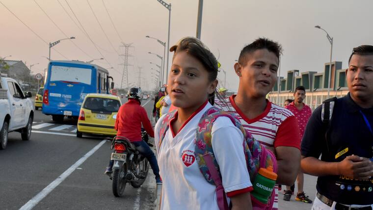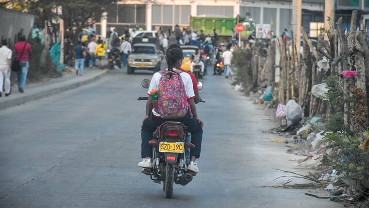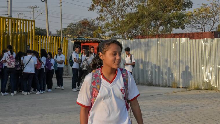 'Te la estás llevando toda, sigue así Chiqui', la frase sale de un grupo de niños que también van camino a clases.
