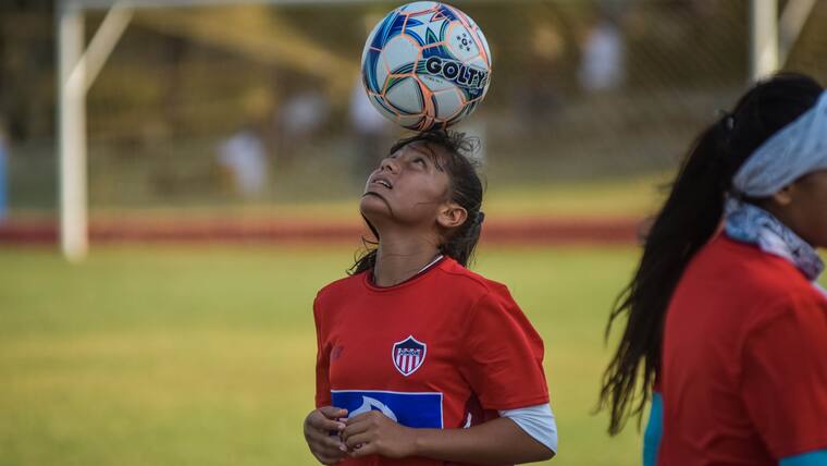La jornada para Iranis comienza a las 5:40 a.m. Desde hace dos meses su rutina ha cambiado, ahora sus madrugadas son más para hacer lo que la apasiona: jugar fútbol. Pero es un día diferente, un jueves de colegio. A pesar de tener solo 14 calendarios encima, su mentalidad es de una mujer que sabe lo que quiere. 'Me gusta mucho el fútbol, amo esto. Mi novio es el balón, pero tengo claro que debo estudiar para ser alguien en la vida', dice con seguridad.